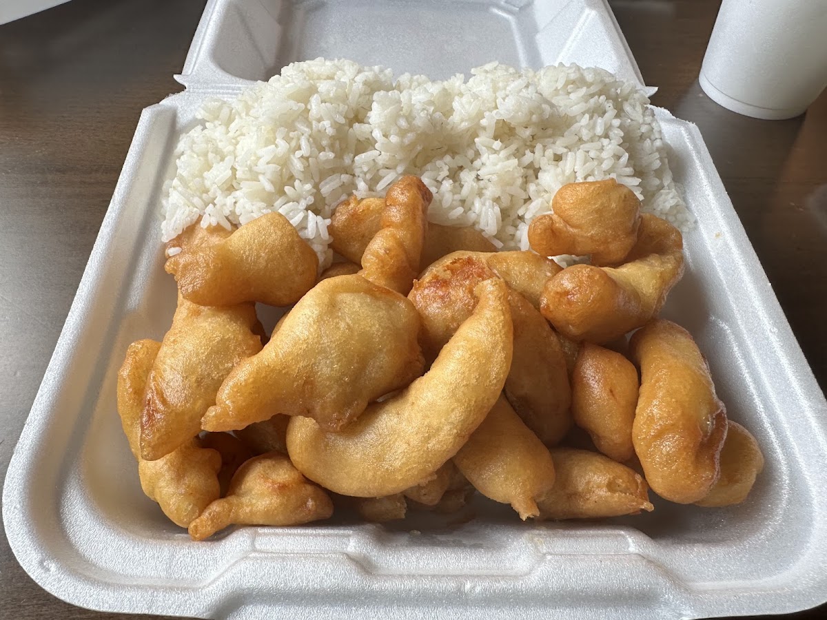 We ordered chicken & broccoli, shrimp lo mei, steamed pork dumplings, and vegetables spring roll, and took back to hotel to eat, we finished them very quickly because they tasted so yummy, my kid always loves shrimp lo mei, he likes small shrimps which are easily to chew, spring rolls are so chrisp that we finished them immediately after back and forgot to take pictures on it, chicken and broccoli tastes so great that we highly recommend if you have light flavor taste, chicken tastes very tender, broccoli tastes fresh, steamed pork dumplings are ok which we actually prefer thin wrap. The dinning area is clean and tidy, The counter staff chased out to give us the spring rolls we forgot to take when we almost drove away. Thank you!