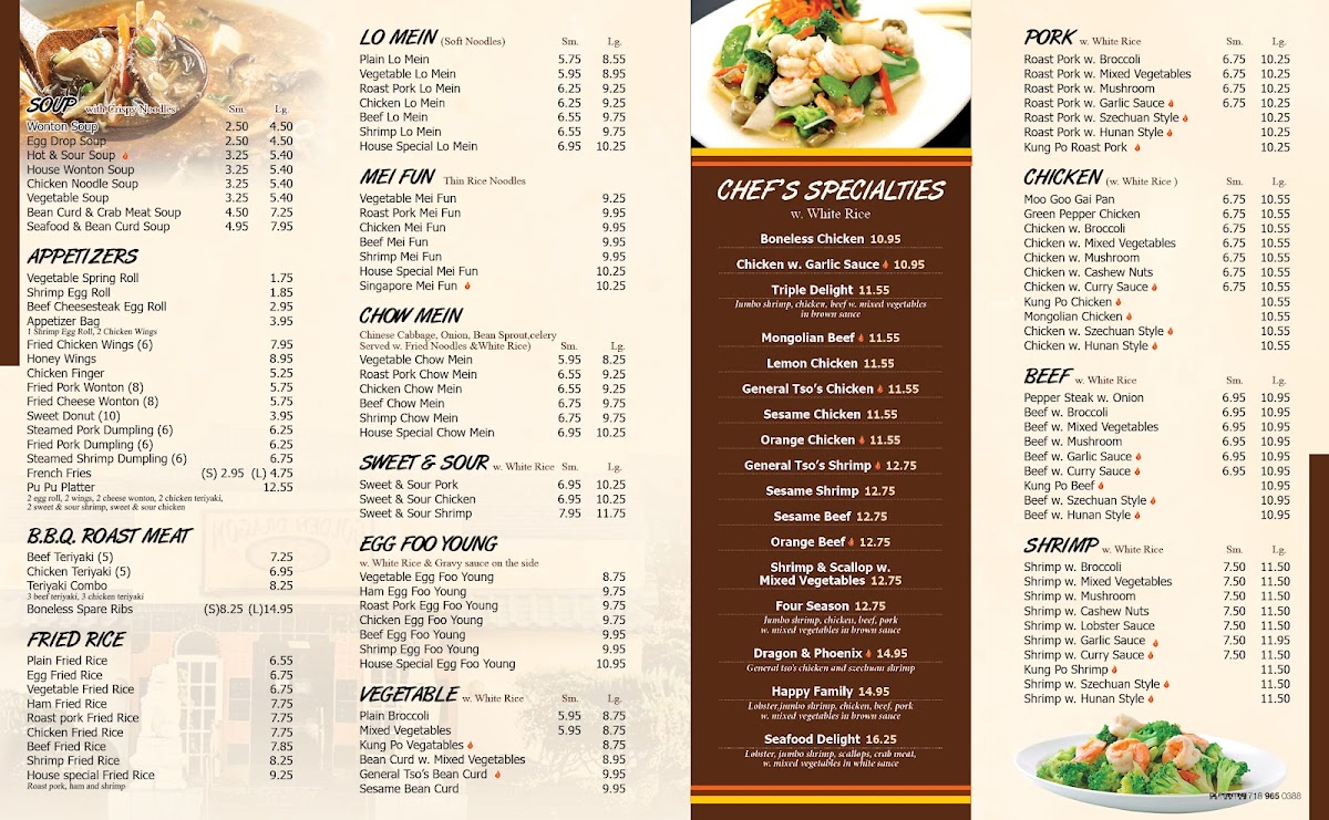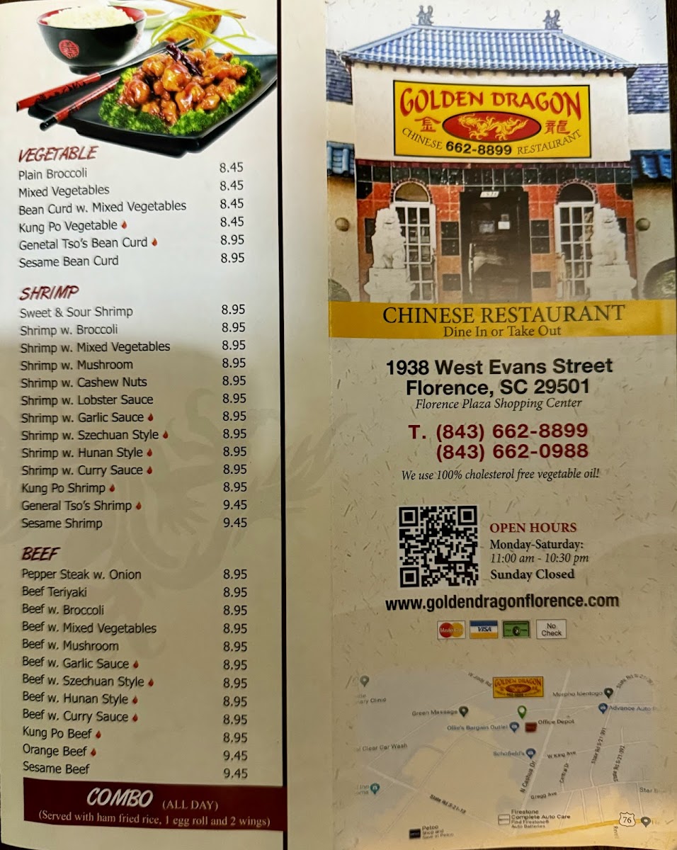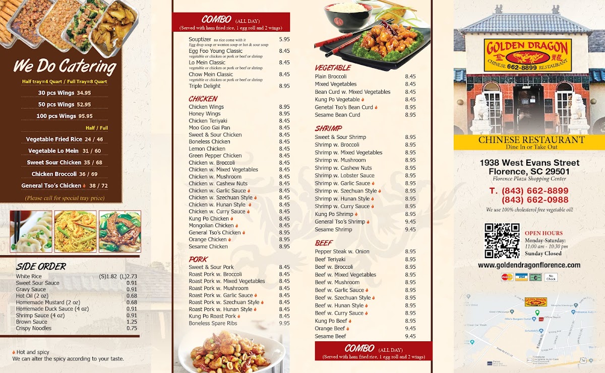 The menu at Golden Dragon Restaurant offers a straightforward and comforting selection of classic Chinese dishes, perfect for casual meals that satisfy cravings without fuss. Whether you're stopping by for a quick lunch, a relaxed dinner, or picking up takeout to enjoy at home, the variety caters well to different appetites and occasions.