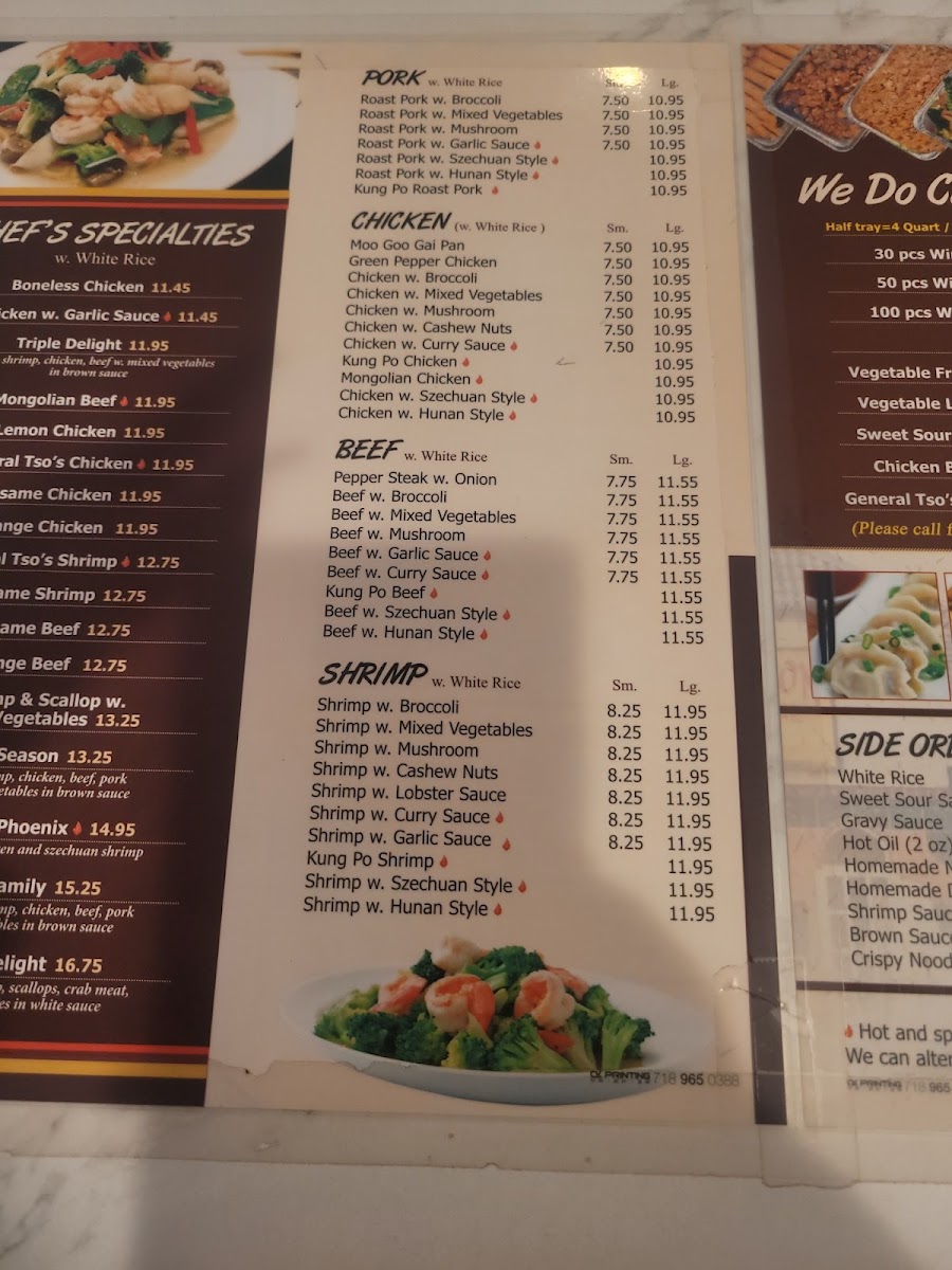 The atmosphere of the menu complements the practical, no-frills character of the restaurant. It pairs well with the casual setting found at the Florence Plaza Shopping Center, where many visitors come for a convenient, satisfying meal rather than a lengthy dining experience. The food’s warmth and familiarity create a sense of comfort, especially when enjoyed on busy days or whenever a taste of home-style Chinese cooking is welcome.